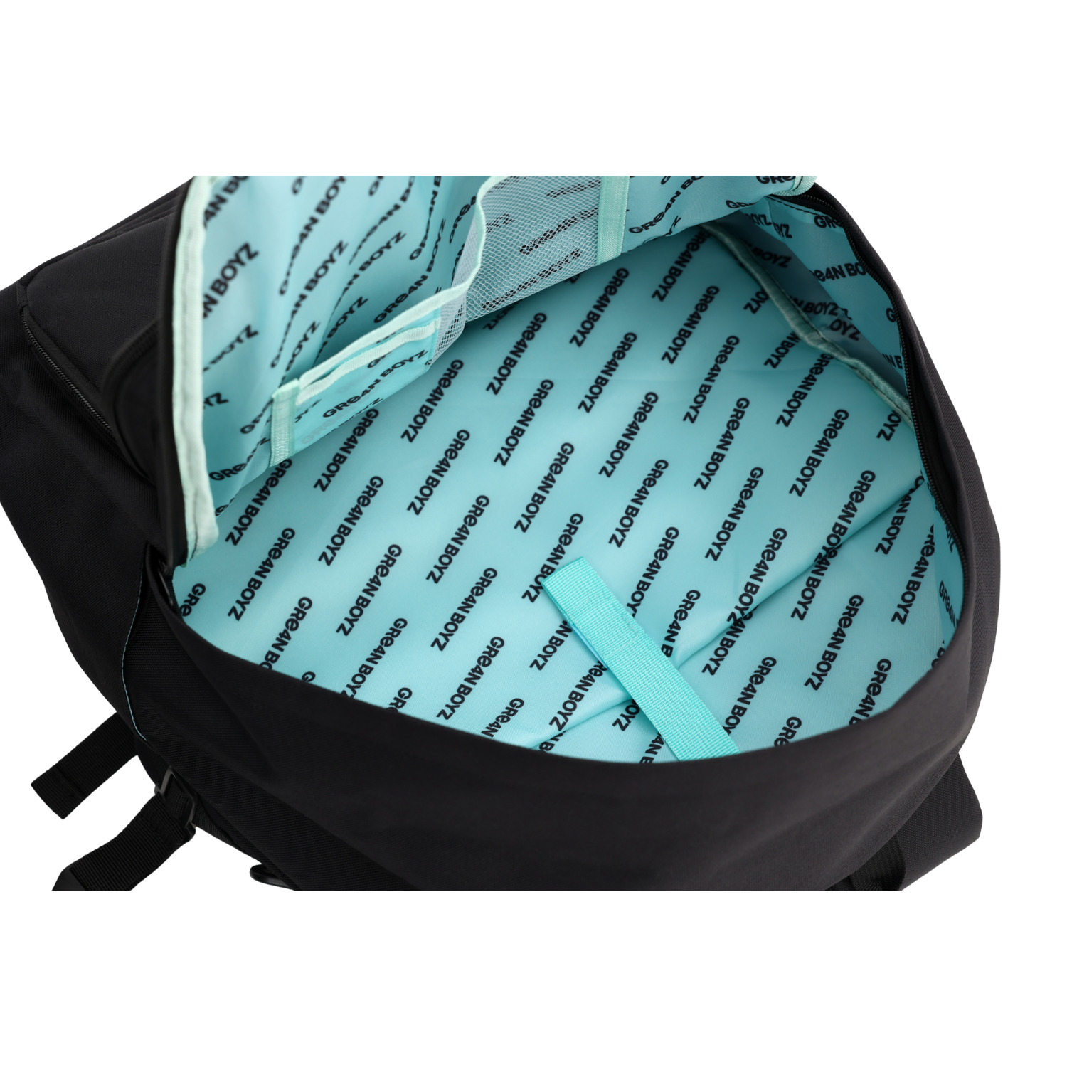 内側にはノートPCやパットなども入るクッションポケットやサイドポケット付き!